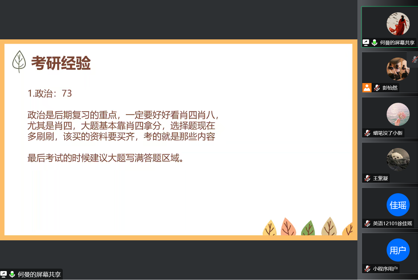 本次分享会同学都收获颇丰,学习到了很多经验,对考研冲刺有了更加清晰的认识,大大提升了学习和考研的信心和动力,让同学们对考研充满斗志。