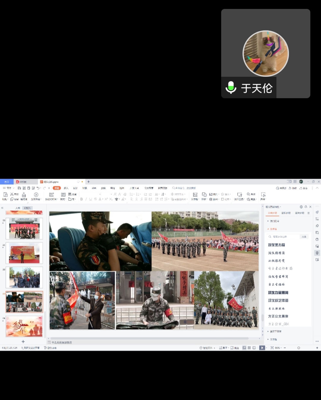 为进一步让同学们了解大学生征兵入伍的政策,鼓励学生积极应征入伍,多经历、多锻炼,11月27日18:00,ok138cn太阳集团529于腾讯会议召开了征兵入伍宣传朋辈领航,本次朋辈领航邀请了2018年退伍大学生于天伦主讲,辅导员甘新敏主持会议,全体同学参与此次会议。