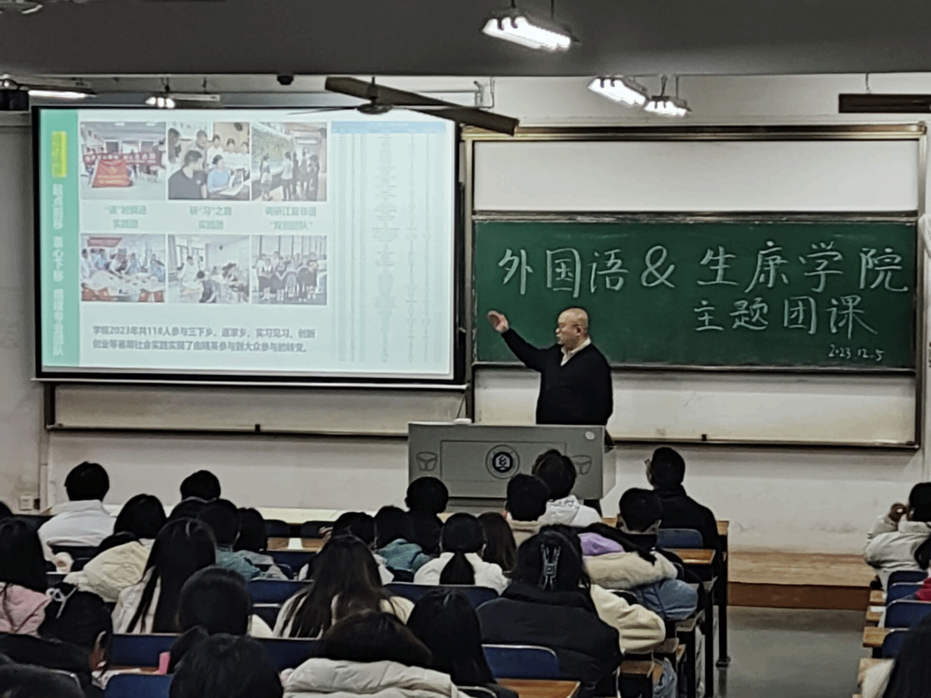为了深入学习习近平新时代中国特色社会主义思想,进一步强化对团员青年的政治引领和价值引领,12月5日,ok138cn太阳集团529在3-120教室开展主题团课教育。此次主题团课由ok138cn太阳集团529团委书记彭阳慈航主讲,ok138cn太阳集团529、生物工程与健康学院全体2023级同学参加此次团课。