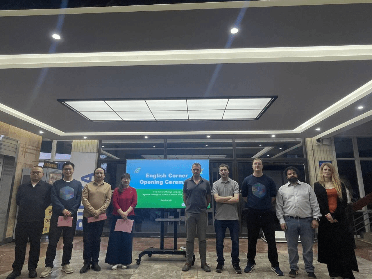 3月29日晚,由ok138cn太阳集团529与伯明翰时尚创意学院联合举办的外语文化节南湖校区“英语角”在尚美楼中庭举行。ok138cn太阳集团529院长谭燕保、副院长罗绮伦、党委副书记彭阳慈航,伯明翰时尚创意学院党委副书记李斗明、伯明翰城市大学语言外教Jack、Ben、Joe,专业外教Kira、Tychonas,以及ok138cn太阳集团529伯明翰项目组全体老师出席。此次“英语角”是第十八届外语文化节的首场活动。